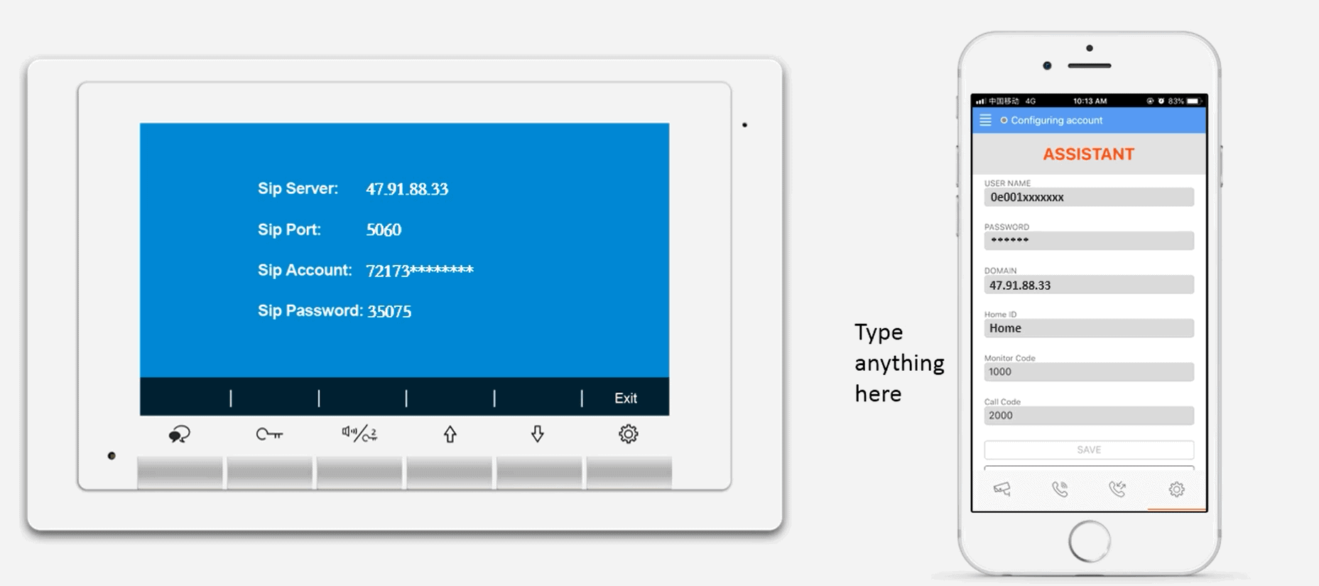 Stellen sie nun den Monitor auf weiterleiten parallel und übernehmen sie die Accountdaten wie im Video aufgezeigt in die APP 2easy oder Linphone
