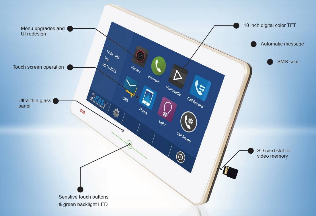 Dieser Sprechanlagen Bildspeicher Monitor kann mit dem lokalen WLAN verbunden werden und verbindet sich dann mit userem SIP Server der es ihnen ermöglicht Gespräche auf bis zu 5 Mobiltelefone (Video & Audio) umzuleiten