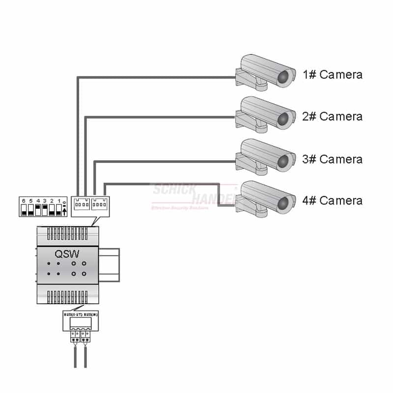 DT-QSW Modell wurde entwickelt um 4 externe Kameras analoge in den BUS der Sprechanlage einzuspeisen .