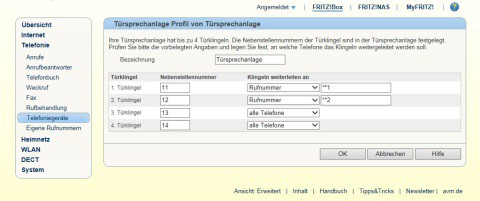 Einstellung Sprechanlage mit Sprechanlagen-Funktion  an Fritz BOX